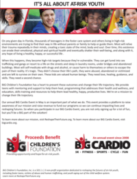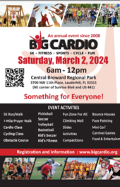 It's time to bring your friends, family and co-workers together to enjoy a day of camaraderie, fitness, and fun for a great cause. There are many activities at BiG Cardio including a 5K run / walk, fitness classes, sports tournaments, and even a prayer walk around the lake! And new this year, we've added Team Competitions on the Obstacle Course!! Team Captains will select their top few members to compete for the fastest time to get through the course while the rest of the team cheers them on from their Team Tent, and the audience cheers from the stands! The top team will win inaugural bragging rights and a trophy to go along with it. (Please refer to the home page for more details about the Obstacle Course Team Competitions). Plus there is entertainment, games, activities, booths, food, and a fun zone too! The event is for all ages and there's truly something for everyone!