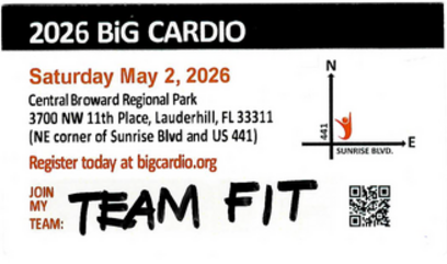 Thank you so much for registering a team for BiG Cardio 2026. We’re so excited you’ve joined the movement to help us make an impact in the lives of at-risk youth in South Florida. Your participation in the event and your advocacy in recruiting members to your team will go a long way to making this the best BiG Cardio ever, and translate to helping hundreds of youth!